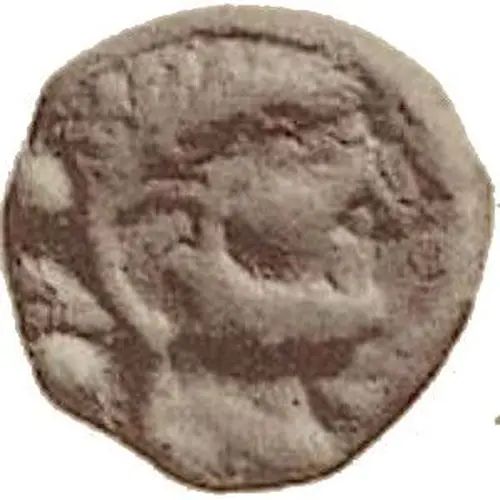 | Obverse description | Male head facing right with two dots behind. |
