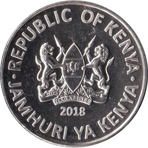 | Obverse lettering | REPUBLIC OF KENYA 2018 HARAMBE JAMHURI YA KENYA (Translation: All pull together. Republic of Kenya.) |