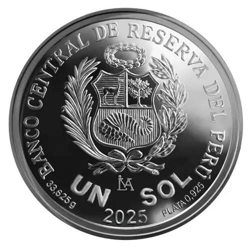 | Leyenda del anverso | BANCO CENTRAL DE RESERVA DEL PERÚ LIMA UN SOL 33,625g 2025 PLATA 0,925 (Translation: Central Reserve Bank of Peru One Sol Silver 0,925) |