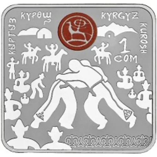 | Légende de l’avers | КЫРГЫЗ КҮРӨШ KYRGYZ KUROSH 1 СОМ (Translation: Kyrgyz wrestling) |