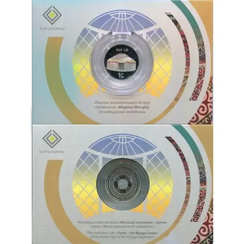 | Obverse description | The coat of arms of the Kyrgyz Republic in the center against the background of the stylized construction of the yurt. The bottom of the coin depicts the year of coin issue (2018). |