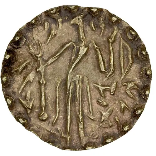 | 裏面の説明 | Goddess standing while facing right wearing flowing drape, all with debased (but still legible) legend around. |