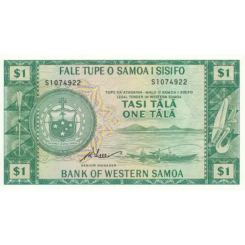 | Legenda del dritto | FALE TUPE O SAMOA I SISIFO TUPE FA`ATAGAINA-MALO O SAMOA I SISIFO LEGAL TENDER IN WESTERN SAMOA TASI TĀLĀ ONE TĀLĀ CENTRAL BANK OF WESTERN SAMOA (Translation: Western Samoa Bank, Government allowance of Western Samoa, One Tālā) |