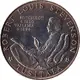 Robert Louis Stevenson, seated, writing, facing left, his dates and places of birth and death above left, surrounded by legend |