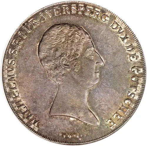 | نوشتههای روی سکه | WILHELMVS S R I PR AVERSPERG DVX DE GOTSCHEE (Translation: Wilhelm, Prince of the Holy Empire and of Auersperg, Duke of Gottschee) |
