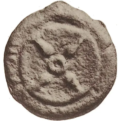 | Ön yüz açıklaması | Four-spoked wheel on raised disk surrounded by legend. |