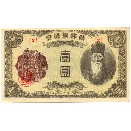 | Opis rubu | 券行銀鮮朝 壹 圓 1 YEN (Translation: Banknote of the Bank of Chosen, One Yen) |