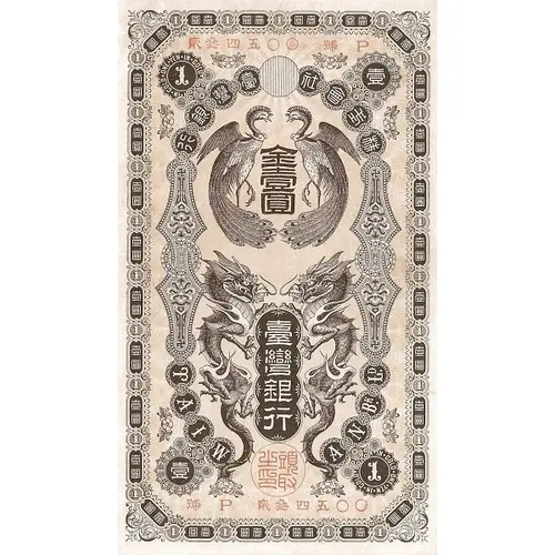 | نوشتههای روی اسکناس | (Translation: THE BANK OF TAIWAN Promises to pay the bearer on demand... Yen in Gold) |