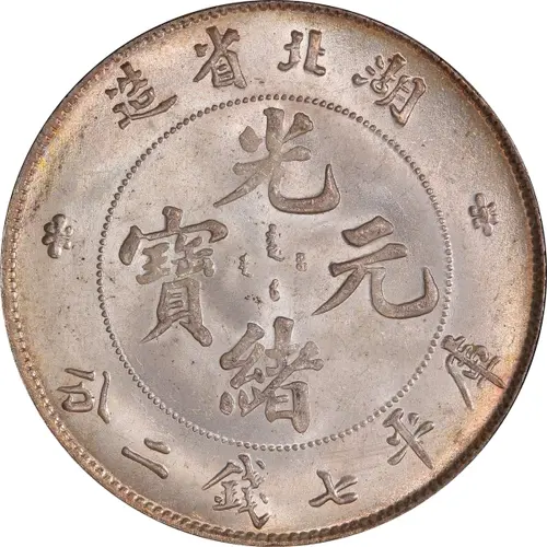 造省北湖 光 ᠪᠠᡩᠠᡵᠠᠩᡤᠠ 寶 ᠶᡠᠸᠠᠨ ᠪᠣᠣ 元 ᡩᠣᡵᠣ 緒 分二錢七平庫 (Translation: Made in Hupeh Province Guangxu (Emperor) / Yuanbao (Original currency) Guangxu (Emperor) / Yuanbao (Original currency) Worth 7 Mace and 2 Candareens (weight)) |