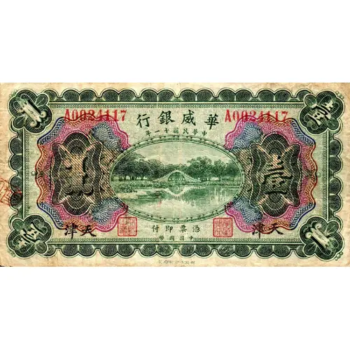 | Arka yüz lejandı | The Sino-Scandinavian Bank promises to Pay the Bearer on Demand at its Office here, Local Currency value Received. ONE YUAN TIENTSIN Feb. 1st. 1922 |