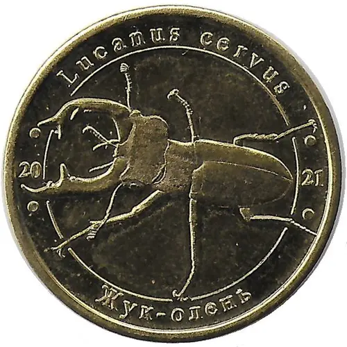 | Chữ khắc mặt trước | Lucanus cervus 20 21 Жук-олень (Translation: European Stag Beetle) |