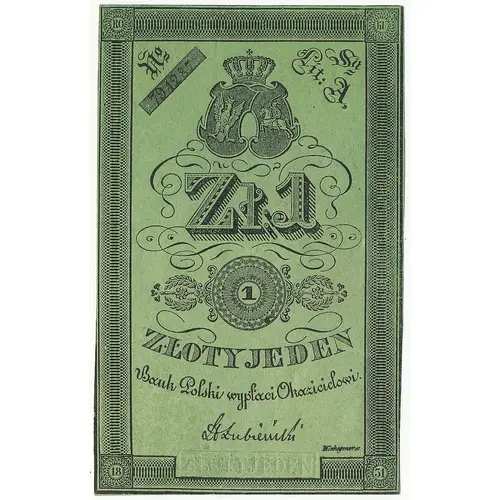 (Translation: ONE ZLOTY Bank of Poland will pay the bearer.)