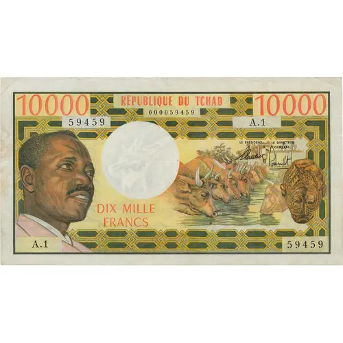 REPUBLIQUE DU CHAD DIX MILLE FRANCS (Translation: REPUBLIC OF CHAD TEN THOUSAND FRANCS) |