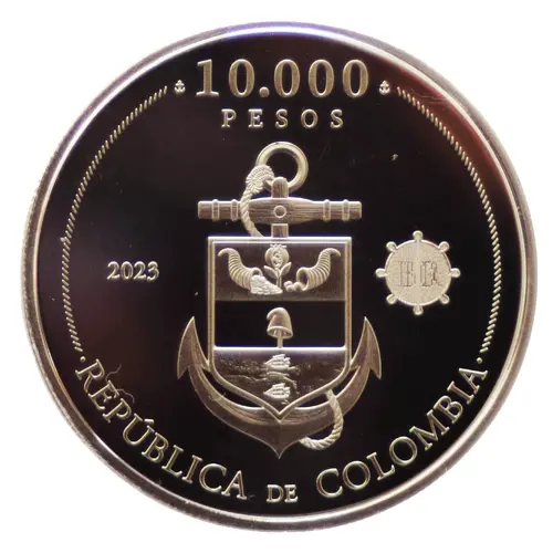 | Arka yüz lejandı | 200 AÑOS DE LA BATALLA NAVAL DEL LAGO DE MARACAIBO ALMIRANTE JOSÉ PADILLA LÓPEZ `Morir o ser libres` 24 DE JULIO DÍA DE LA ARMADA DE COLOMBIA 1823-2023 (Translation: 200 years of the naval battle of Lake Maracaibo Admiral Jose Padilla Lopez `Die or be free` July 24, Colombian Army Day) |