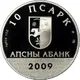 | Obverse lettering | 10 ҦСАРК Ag925 1OZ ММД АҦСНЫ АБАНК 2009 (Translation: 10 Apsars MMD The Bank of Abkhazia) |