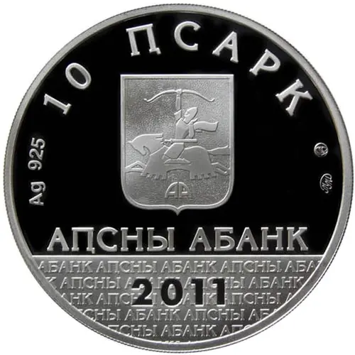 | 正面铭文 | 10 ҦСАРК Ag 925 ММД АҦСНЫ АБАНК 2011 (Translation: 10 Apsars Ag 925 MMD The Bank of Abkhazia) |