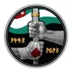 | Reversbeschreibung | The reverse of the coin depicts the national flag of the Republic of Abkhazia, made with color pad printing, with two hands holding the shaft, symbolizing the continuity of generations of defenders of the Fatherland. On the sides of the shaft are the dates 1993 – 2023, covered in gold. The coin is minted from 925 silver, with a pure metal weight of 31.1 g. The design uses gilding and color pad printing. |