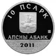 | Opis líce | 10 ҦСАРК СПМД Ag 925 АҦСНЫ АБАНК 2011 (Translation: 10 Apsars SPMD The Bank of Abkhazia) |
