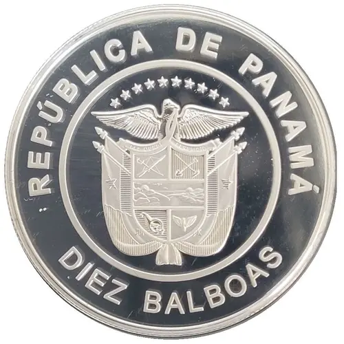 | Legenda del dritto | REPÚBLICA DE PANAMÁ ********** PRO MUNDI BENEFICIO DIEZ BALBOAS (Translation: Republic of Panama For the Benefit of the World Ten Balboas) |