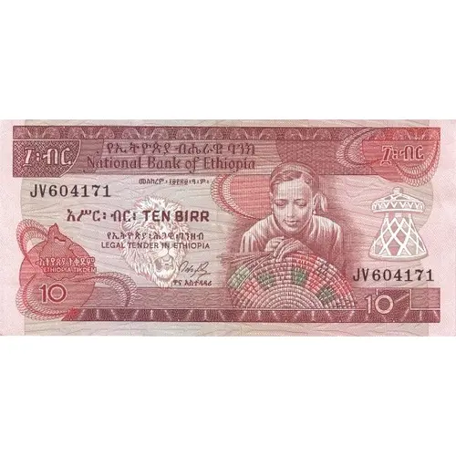 | Chữ khắc mặt trước | ፲፡ብር የኢትዮጵያ ብሔራዊ ባንክ National Bank of Ethiopia መስከረም፡፲፱፻፷፱፡ዓ፡ም፡ አሥር፡ብር፡ TEN BIRR የኢትዮጵያ፡ሕጋዊ፡ገንዘብ LEGAL TENDER IN ETHIOPIA ኢትዮጵያ ትቅደም ETHIOPIA TIKDEM 10 (Translation: 10 Birr National Bank of Ethiopia September 1969 A.M. Ten Birr Legal Tender in Ethiopia Ethiopia First) |