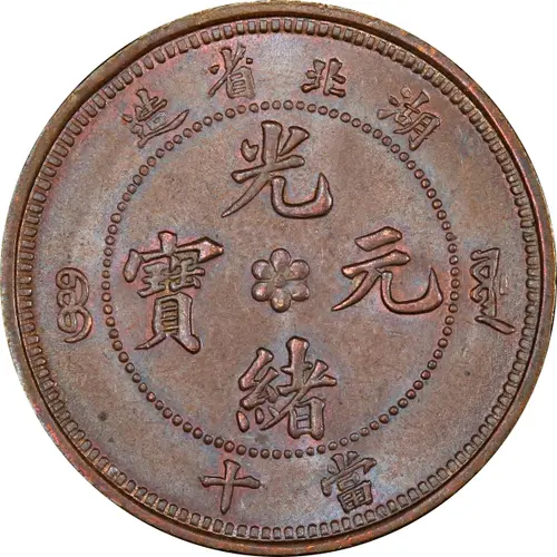 | Légende de l’avers | 造省北湖 ᠪᠣᠣ ᠶᡠᠸᠠᠨ 光 寶元 緒 十當 (Translation: Made in Hupeh Province Yuanbao (Original currency) Guangxu (Emperor) / Yuanbao (Original currency) Worth 10 Cash) |