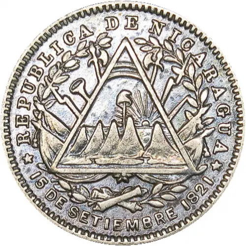 | Obverse lettering | * REPUBLICA DE NICARAGUA * 15 DE SETIEMBRE 1821 (Translation: Republic of Nicaragua 15th Sep 1821) |