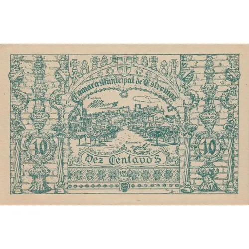 | Opschrift voorzijde | Camara Municipal de Estremoz 10 Centavos (Translation: Estremoz City Council 10 Cents) |
