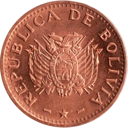 | Chữ khắc mặt trước | REPUBLICA DE BOLIVIA (Translation: Republic of Bolivia) |