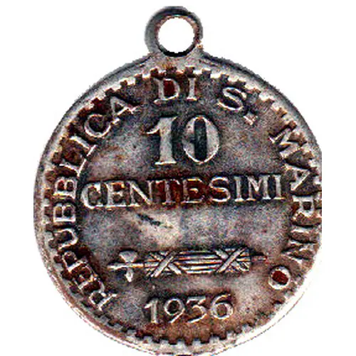 | Ön yüz lejandı | REPUBBLICA DI S.MARINO 1936 10 CENTESIMI |