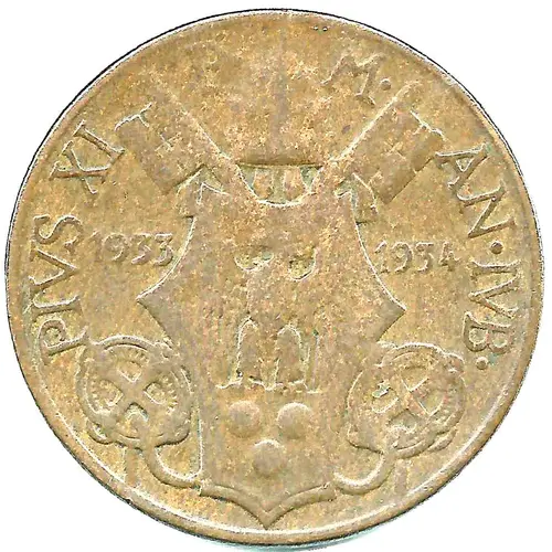 | Obverse lettering | PIVS XI P. M. AN. IVB. 1933 1934 |