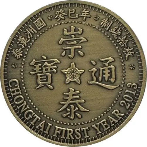 | Opis líce | 泰漢洲國 癸巳年 制錢拾枚 崇泰通寶 CHONGTAI FIRST YEAR 2013 (Translation: Taihanzhou State, 2013, 10 Cents Chongtai Tongbao) |
