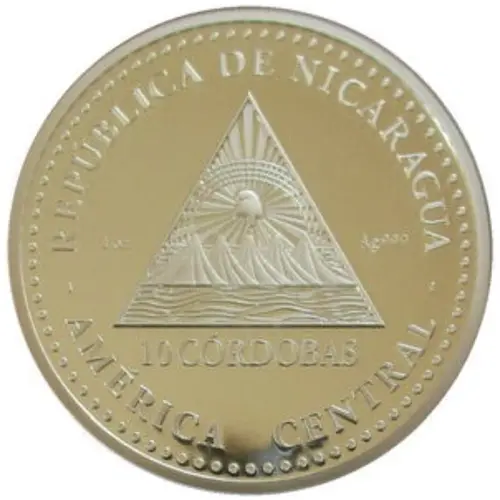 | نوشتههای روی سکه | REPÚBLICA DE NICARAGUA 1 oz Ag 999 10 CÓRDOBAS - AMÉRICA CENTRAL - (Translation: Republic of Nicaragua 1 Ounce .999 Silver Central America) |