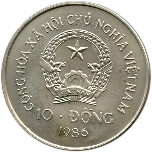 Legenda awersu CỘNG HÒA XÃ HỘI CHỦ NGHĨA VIỆT NAM 10 . ĐỒNG 1986