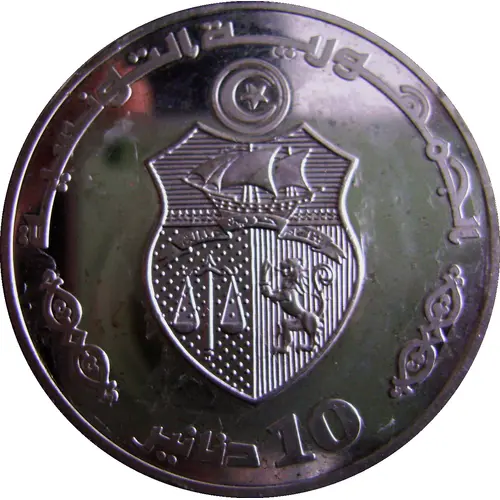 | Obverse lettering | الجمهورية التونسية دنانير 10 (Translation: The Tunisian Republic 10 Dinars) |