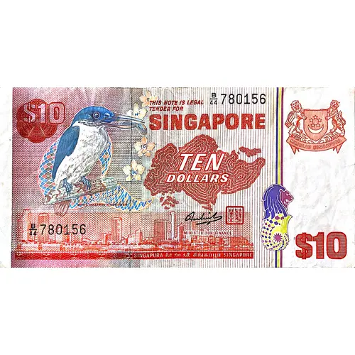 Légende de l’avers THIS NOTE IS LEGAL TENDER FOR SINGAPORE TEN DOLLARS WHITE-COLLARED KINGFISHER MINISTER FOR FINANCE SINGAPURA 新加坡 சிங்கப்பூர் SINGAPORE $10
