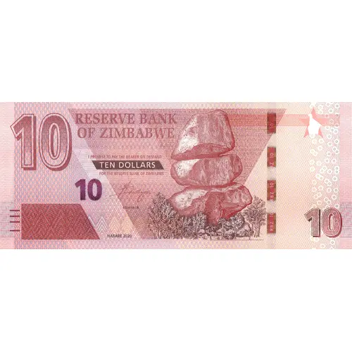 RESERVE BANK OF ZIMBABWE I PROMOSE TO PAY THE BEARER ON DEMAND TEN DOLLARS FOR THE RESERVE BANK OF ZIMBABWE HARARE 2020 |