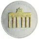 Mô tả mặt sau Brandenburg Gate in detachable goldtone metal which can stand up in indentations on coin`s surface. Surrounded by lettering. Matte finish in contrast to proof finish of the obverse.