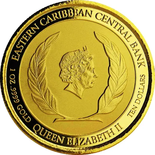 EASTERN CARIBBEAN CENTRAL BANK 1 OZ .9999 GOLD TEN DOLLARS QUEEN ELIZABETH II |