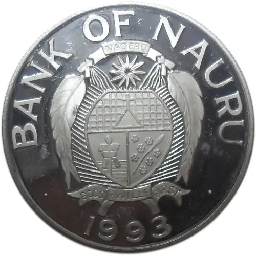 | Obverse lettering | BANK OF NAURU NAOERO GODS·WILL·FIRST 1993 |