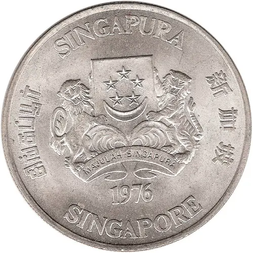 | Legenda do anverso | SINGAPURA சிங்கப்பூர் MAJULAH SINGAPURA 新加坡 SINGAPORE 1976 (Translation: Onward Singapore) |