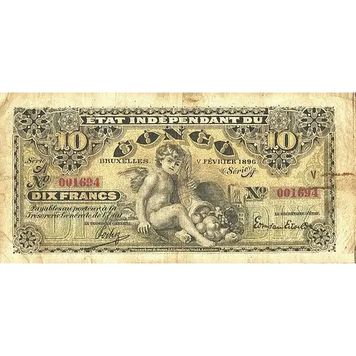 ÉTAT INDÉPENDANT DU CONGO DIX FRANCS PAYABLES AU PORTEUR À LA TRÉSORERIE GÉNÉRALE DE L`ETAT |