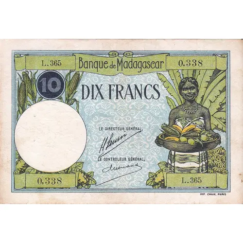 Banque de Madagascar Dix Francs IMP. CHAIX. PARIS |