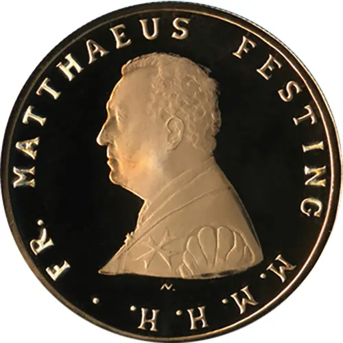 Obverse lettering FR. MATTHAEUS FESTING M.M.H.H.
