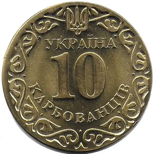 | Obverse lettering | УКРАЇНА 10 10 КАРБОВАНЦІВ |