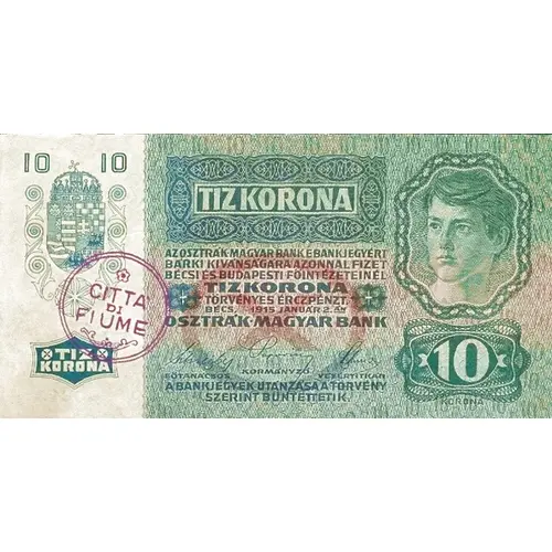| Descrizione del dritto | Boy Hungarian text Handstamp or overprint on the Hungarian side of Austria P#19. By decree the handstamps or overprints had to be placed on the Hungarian side of the notes, as Fiume belonged to the Hungarian part of the Austro-Hungarian Empire (Handstamps or overprints on the German side are believed to having been applied far later by certain individuals) |