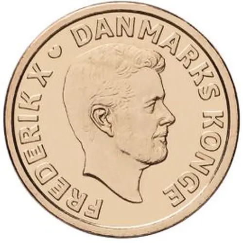 | توضیحات روی سکه | Portrait of King Frederik X looking right, surrounded (from left to right) by name, mintmark, and title. |