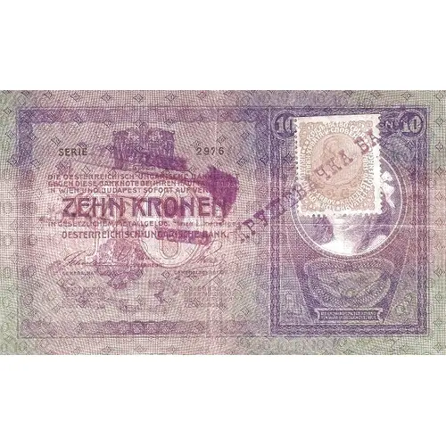| 正面描述 | Adhesive stamp and handstamps on Austria P#9 on the German side. |