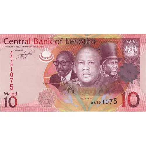 Central Bank of Lesotho This note is legal tender for Ten Maloti |
