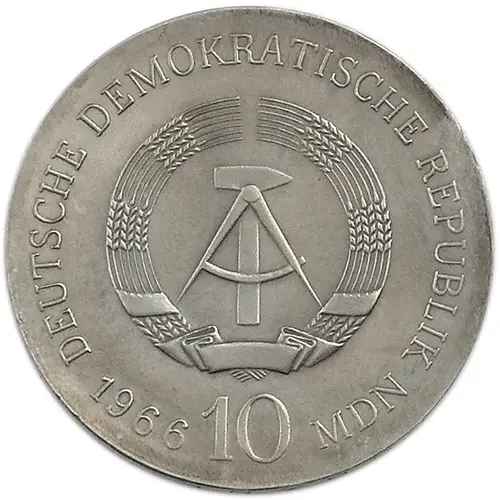 | Obverse lettering | DEUTSCHE DEMOKRATISCHE REPUBLIK 1966 10 MDN |