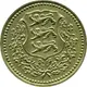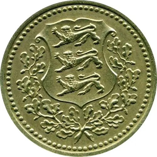 | Obverse description | Three lions facing left on shield within wreath. |